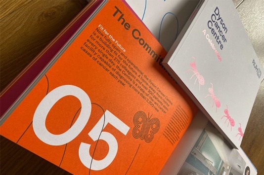 Read more...Designed by Honest Studio and printed by Taylor Brothers, Bristol, the Dyson Cancer Centres celebration is a commemorative book to celebrate the support of those who made the new Dyson Cancer Centre possible. Printed on Antalis Olin Design grade, the book has a warm, tactile feel that aligns with hospital charity RUHXs brand identity and the heartfelt message within its pages.