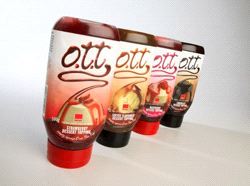 Monday 07. January 2008 - The Orion headstand bottle from RPC Containers Corby has proved the ideal packaging format for Macphie’s range of delicious, versatile O.T.T (Over The Top) Dessert Toppings.