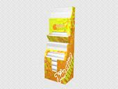 Secondary placements surround brand presentations with a sensual implementation of their message; the integration of dispenser systems or the use of animations and films generated by video technology creates direct powers of persuasion at the P.O.S. The displays, which appear in the typical orange colour of the “Juiceful Things” idea workshop, dispense fragrances or even a tasting experience.