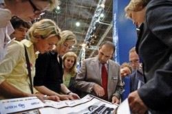 Each day of the fair focuses on a different topic relating to print buying, and yesterday was communications associations day. It was also the first day on which print buyers and members of the German association dropped by the KBA stand in order to come up to speed with our technology. Interest was so great that we had to split them into three groups. A central issue was climate-neutral print production, and here the presses featuring waterless and keyless Gravuflow inking were the centre of attention. Other groups will follow, for example on trade communications day (5 June) and media buyers day (6 June). Prior to the fair almost 100 groups had booked tours of the KBA stand for their international visitors. We shall also be welcoming prospects and groups from all over the world who have been booked in by our sales agencies.