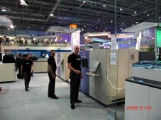 At drupa Screen booth, the Truepress Jet520 is doing live print of various newspaper titles with the same-day content, getting actual publication data from all over the world via networks; Asahi/Japan, DongaLibo/Korea, Daily Mail & Evening News/U.K., Le Monde/France, Handlessbatt/German, Elypais/Spain, USA Today/U.S.A.