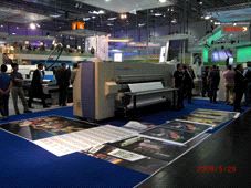 It is displayed at the center of Screen booth, and to show its quality and performance, live print onto both roll and board type media is being demonstrated.
