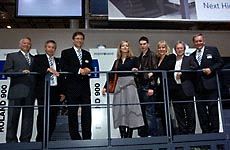 Pleased with the format ROLAND 900, XXL transaction (from the right): Daniel Hipp, Managing Director manroland France; Mr and Mrs Van de Mert, Management of Ouest Affiches, with their children Pierre and Sophie; Dr. Markus Rall, Member of the Board manroland, Business Sector Sheetfed Presses; Jean Marc Clerget, Sheetfed Press Sales Manager manroland France; Michel Perrin, Salesman, manroland France.