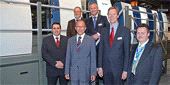 Smiling faces on the KBA stand at Drupa 2008 (l-r): Thomas Lüdi (sales manager, Print Assist), Christian Steiger (plant manager, Langenbach), Hansulrich Brauchli (managing director, Langenbach), Peter J Rickenmann (managing director, Print Assist), Ralf Sammeck (executive vice-president for sheetfed sales, KBA) and Roland Fritz (technical manager, Lande-Langenbach Group)