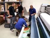 Now, the first of these “Direct-to-Fabric” digital printers of the model Jeti 3324 Aquajet was successfully installed in Europe at the digital printing provider PlotFactory in Switzerland. The prospective company founder and owner of PlotFactory AG, Mr. Rinaldo Fochetti, quickly recognized the potential of this new machine with a printing width of 3 meters and was one of the first to order one Jeti 3324 Aquajet at the ITMA 2007 in Munich. Upon the explicit demand of PlotFactory, this new high performance printer has been supplied together with ErgoSoft TexPrint v.2008 RIP software. “Due to of our positive experience at PlotFactory with the different RIP software products from ErgoSoft regarding usability, speed and color accuracy it was obvious to run one of the fastest and best textile printers on the market with the best RIP software solution for digital textile printing” said the CEO of PlotFactory, Mr. Rinaldo Fochetti on the occasion of the installation of the Jeti 3324 Aquajet in the company headquarter in Weisslingen, near Zürich. Further more the ErgoSoft RIP software ensures the full control of each of the 6 ink channels of the Gandi printer which supplies 24 Spectra print heads, which applying the ink precise and fast onto the media.