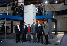 The contract is signed and sealed. Baumann Druck has ordered a LITHOMAN from manroland. Bottom row from the left: Georg Knorr, Process Manager of Fränkischer Tag; Gerd Finkbeiner, CEO of manroland; Monika Uhlemann, Managing Director of Baumann Druck; Walter Schweinsberg, Managing Director of Medienhaus Baumann; Bernhard Bitzl, Regional Sales Manager Web Presses at manroland; Oliver Diller, Departmental Manager Planning and Production at Fränkischer Tag and associate partner in the company. Top row from the left: Jörn Leschner, Web Printing Systems Sales at manroland Süd; Rainer Mähringer, Prepress Department Manager at Baumann Druck; Dirk Seidler, Sales Manager at Baumann Druck; Markus Bader, Area Sales Manager Web Presses at manroland; Jörg Schild-Müller, Managing Director of Baumann Druck.