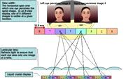 Epson’s 3D display is a multiview system. Multiview systems are generally acknowledged to provide superior 3D image reproduction because the image that is visible changes along with the observer’s vantage point relative to the screen. To heighten the illusion of depth in stereoscopic 3D images, design engineers can increase the number of views so that the image can be viewed from various head positions. The problem, however, is that increasing the number of views has led to a loss of resolution per view, since only so many pixels can be placed on a liquid crystal display.