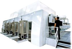 This 5,5m width line is equipped with new feeder, vacuum sheet transfer on full width, 4 fixed flexo printing units, full automatic folding unit, squaring, stitching, taping…