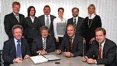 "Madsack sign with DTI for the group-wide editorial solution”. Sitting - from left to right: Geoff Walker, CFO, DTI; Ernst-J Komberg, MD, DTI GmbH; - and from Madsack: Karl-Rüdiger Garbs, MD, finance, labour and IT; Sven Fischer, Leiter Zentralbereich. Standing – from left to right: Rainer Golembek, Marion Springer, Berhard Hinrichs, Project Group; Anna Nolte, Purchasing Department; Klaus Neffgen, Project Group, Joanna Kulik, Purchasing Department.