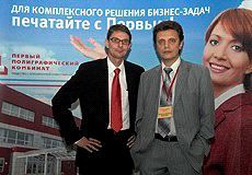 From the left: Michael Beier, manroland Russia and Dimitri Dementjev, PPK, are to continue the project. Photo: Karl Malik