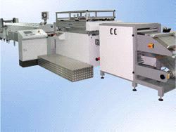 Distinguished by fully electronic controls that eliminate time-consuming manual adjustments, the Spartanics-Systec Fineprint Flatbed Screen Printing Line is custom-configured to dimensions that will allow optimized print formats for faster throughputófor the smallest print layouts to the largest– even with jobs as large as 80î x 165î (2032 mm x 4191 mm).