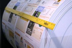 “We are able to print using standard, uncoated 50-lb. (~75 gsm) and 60-lb. (~90 gsm) media with the press, as well as light-weight, high-bright newsprint stock to achieve superior results,” said Mark Rosson, vice president, Sales and Marketing, ONeil Data Systems. “Normally, with the font size as small as it is in this publication, you would expect the circles in a percent sign to appear as dots on an inkjet-based production device, but the text is clear and sharp with the press, and the colour makes charts much easier to read.”