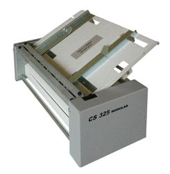 The CS 325 Modular has a maximum working width of 325mm and accommodates paper weights from 80 – 400 g/m”. It processes paper up to A4 in size including laminated and coated stock. The CS 325 Modular offers a simple two-step process: firstly, sheets are manually fed and cut into longitudinal strips. The user then adjusts the cutting tools and feeding table guides and re-feeds the strips for cutting into cards.