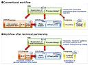 In order to solve these problems, Screen has been enthusiastically encouraging the shift to PDF workflow through its partnership with Adobe Systems Incorporated, by publishing DTP Output Guidelines for Trueflow users and holding technical seminars for customers. Screen intends to further automate the workflow using the JDF (Job Definition Format) standard as well. As part of this, Screen reached a basic agreement to license the latest imposition and JDF software modules of Trueflow SE EQUIOS-Pre4m from the Screen Workflow Core (SWC, Screens core workflow technology) software module library, for PrintSapiens from Olive and Hidariuchiwa from Tosbac Systems. This enables connection between either companys MIS and CtP workflows using JDF files that include stripping parameters (folding and binding). These JDF files can be used not only with Screens Trueflow SE Version 7, but also with all other CtP workflows that support the same parameters. This compatibility means that users of MISs made by Olive and Tosbac Systemswho hold more than 70%* of the Japanese market share in totalwill be able to make imposition instructions easily on the MIS and reflect it in CtP workflows. While conventionally, the sales/process management (MIS), DTP, and prepress (CtP workflow) processes each required their own separate imposition instructions and personnel, this latest technology partnership allows operators in charge of sales or process management to select the necessary pattern from a folding/binding catalog when registering the order to MIS, and to transfer JDF files that include stripping parameters from MIS to CtP workflow. Imposition information is automatically created in the CtP workflow, greatly reducing the amount of work required. This eliminates intermediate tasks between processes and reduces operational errors as well as promoting unified production management by MIS.