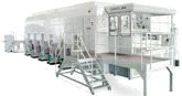 The two metre-wide press, which runs at speeds of up to 10,000 sheets per hour, includes two stacking towers, one for good sheets, and the other for bad sheets, which are rejected without being destroyed. As a result, the system guarantees defect-free print runs. The press includes full direct-drive technology on all shafts, fully automatic shaft positioning and plate cleaning, and an ink management system.
