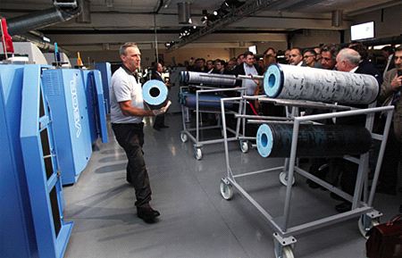“Labels and flexible packaging are among the few markets in our industry that are growing,” says David Strobbe, Commercial & Technical Director at the Strobbe printing house in Izegem, Belgium. Backing up this claim, there was an impressive response to the Muller Martini open house event. Around 300 visitors from all over the world flocked to the HYPERLINK “http://www.mullermartini.com/ger/desktopdefault.aspx/tabid-170/” \t “” Training Center Druck in Maulburg (Germany), to witness Muller Martini and partners demonstrate its considerable expertise in the labeling market and, in particular, the packaging and package printing markets. As such, the live demonstrations of the newly launched Variable Sleeve Offset Printing (VSOP) machine technology, with a focus on UV inertization and electron-beam hardening, were met with eager anticipation.