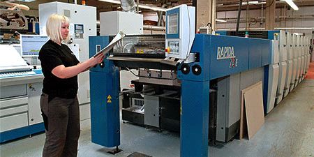 “We virtually sell makeready time, since it comprises as much as 80 per cent of any print job,” explains Martin Schmutterer. The Rapida 75Es automatic format adjustment, automatic washing, semi-automatic plate changing and touchscreen display with quick-select buttons has cut this time dramatically.