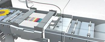 This sensor is integrated into the paper path for in-line measurement of color density. It automatically provides feedback on the measured data to the Color Maintenance Tool so that the machine can automatically optimize the color density.