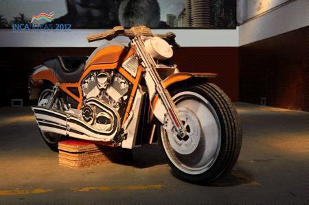 Thursday 11. April 2013 - Artwork Digital, Brazil, conceived and produced a 3D board model of a 2008 Harley Davidson V-Rod which showcases the versatility of digital printing, when combined with cutting tables, and Re-board substrates.