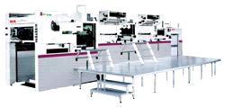 The MK21060STE Duopress foil stamping and die cutting machine with stripping is designed with a one-pass integrated system combining the platen through the embossing and foil stamping onto the die cutting and stripping functions. The two-platen system makes the machine a versatile production platform for creating high-quality packaging or decorative greeting cards with elaborate designs. The machine boasts a maximum output speed of 6,000 sheets per hour, but because multiple passes with two platens run at one time, users realize an output of 12,000 sheets per hour. Its optimized pressure adjustment provides a better foil stamping result. Its patented design of the adjusting mechanism ensures that the two units have high register accuracy. A separate power-driven waste conveyor belt is capable of removing waste at a high speed.