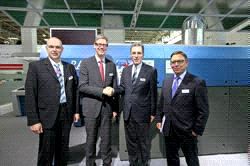 KBA’s sheetfed offset organisation will be taking on exclusive sales and service responsibility for MBO machines in selected countries in Europe, Asia, Latin America and Africa, and will be assisting the existing MBO sales teams on a commission basis in respect of suitable projects elsewhere. MBO has its own sales offices in the USA, China and France. The cooperation agreement was signed by MBO managing director Frank Eckert and KBA executive vice-president for sheetfed offset sales Ralf Sammeck at the 2013 China Print trade fair in Beijing. Further details are to be announced over the coming weeks.
