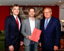 The philosopher Dr. des. David Hommen from Viersen has received the drupa Prize 2013 for his dissertation “Mentale Verursachung, innere Erfahrung und handelnde Personen. Eine Verteidigung des Epiphänomenalismus” (Mental Causation, Inner Experience and Acting Individuals. In Support of Epiphenomenalism). The Award was presented by Claus Bolza Schünemann (Chairman of the Board at Koenig & Bauer AG and President of drupa 2016), Werner M. Dornscheidt (President & CEO of Messe Düsseldorf) and Prof Dr Dr H. Michael Piper (Principal of Heinrich-Heine University Düsseldorf) as part of a celebratory event at the “Industrieclub Düsseldorf” on 3 June.
