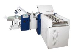 Monday 10. February 2014 - At this year's IPEX exhibition MB Baeuerle will show the fully automatic folding system prestigeFOLD NET 52 with double alignment table DAT 24 at the stand of its sales partner Encore Machinery (S2-E 182). The folding system is connected inline to the creaser Pit Stop DH Speed, an ideal combination for processing digitally printed products. For the efficient production of a selfmailer, the system shown at the fair will also be equipped with a hot-melt unit.
