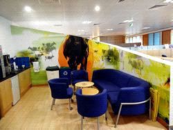 Visually appealing workplaces can inspire and energize staff and there’s nothing like the beauty of nature to brighten up your office. Environmental graphics make it easy and affordable to give any space a creative kick. Here are five places in your office environmental graphics can make a big impact: