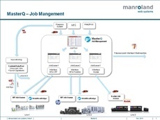 MasterQ was developed by manroland web systems to synchronize finishing modules with the printer and is especially suited for users of one or more digital printing systems and digital finishing lines such as FoldLine and FormerLine. The module sorts, groups, and verifies incoming print orders, even if they stem from various sources, based on a special scalable algorithm. The jobs prepared this way are then relayed to the digital printing systems and the print finishing control (such as WorkflowBridge). In return, these provide MasterQ with status and process information.