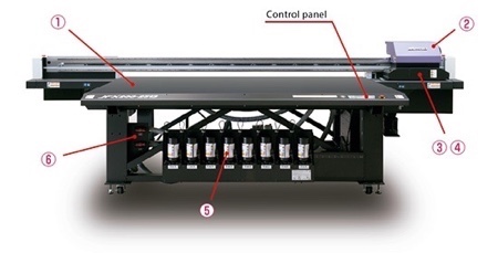 Vacuum table unit – easily controlled with ON/OFF switches located in the front area of the printer. The two toggle switches separately control each of the two vacuum partitions that facilitate secure and accurate media positioning.