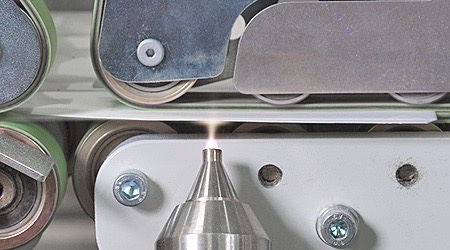 One such solution is the BOBST Plasma Treater. Simply put this add-on device uses high voltage electricity to superheat air, breaking atoms into super-charged ions. This stream of ionized gas is then directed through a nozzle which is positioned, immediately prior to glue application, at the flap that will become the glue joint of the carton. The ions break down the surface tension of the substrate, essentially creating a “roughing” effect which allows it to hold more adhesive, thereby creating a much stronger glue bond.