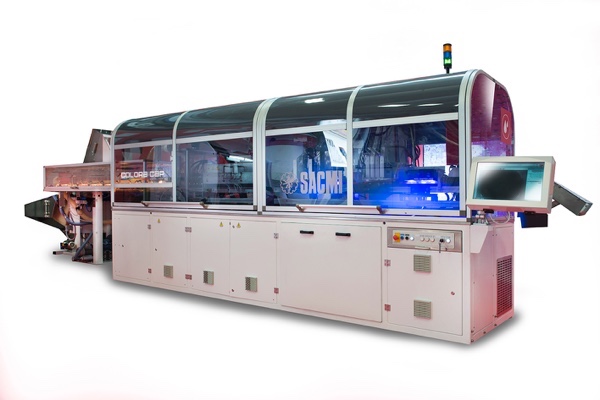 Downstream from the CCM, Sacmi proposes the new COLORA CAP, the revolutionary cap digital printing system that allows HD application of any decoration on plastic caps. Freely programmable – with up to 10 million images – the machine impresses the chosen decoration on the cap with scans lasting just 2 tenths of a second, ensuring a clear response to beverage manufacturers burgeoning need to bring out the best in both product and brand; this goes hand in hand with further developments on the coloured cap front (with the use of, in place of traditional coloured grains, liquid colorants that act on a neutral molten plastic base, thus making colour changeovers much faster).