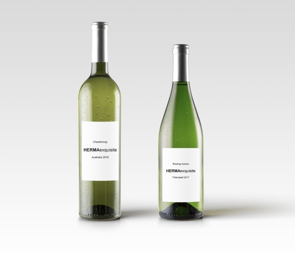 For such cases, HERMA has extended its range of self-adhesive materials for wine bottles, adding two new white papers: HERMAfelt white (grade 313) and HERMAfelt high white (grade 314). Both are wet-strength, uncoated, textured papers with an exciting tactile feel. On top of that, HERMAfelt high white provides excellent wet opacity: even after a long time in an ice bucket, labels made from this material show no unsightly wet stains, maintaining their clean appearance until the last drop of the bottle. HERMAfelt high white requires no special barrier coating – this reduces costs for printers. Both materials offer great versatility in the choice of printing methods. Flexo and offset printing as well as digital printing create excellent results, even though both papers are quite demanding due to their structure.