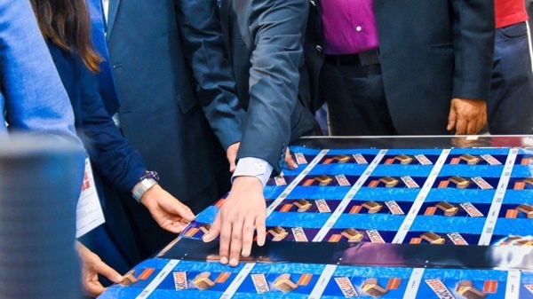 The demonstration on the CL 850D laminator focused on a trending application of design enhancement aimed at increasing the packagings visual appeal at point of sales. Some selected areas of the design of the pre-printed and pre-laminated reels of the chocolate bar mock packaging were coated in register with a matt lacquer from Flint. The CL 850D lived up to its reputation in terms of register control capability, showing the exceptional performance of the BOBST Registron system both at speed variations and after the splice on the rewinder at the production speed of 400 m/min. The entire process generated very little waste, returning back to register within a matter of seconds.