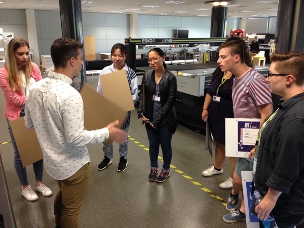During the detailed and professional training, students got to grips with the technological and practical aspects and learnt how to streamline packaging production from design to printing plate. The group of students is composed from Artevelde University College in Ghent, as well as peer students from the School of Engineering and Management, Switzerland, and both Seneca College and Ryerson University in Toronto, Canada.
