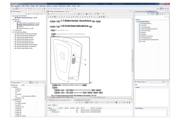 Wallbox Home Eco from Heidelberger Druckmaschinen AG (Heidelberg) is a high-performance charging device for electric cars. As a stationary system mounted directly on the wall, it can be used to recharge any electric car battery quickly and easily. Development and production operations for the charging device take place at Heidelberg in Germany. Even the associated technical documentation is produced in-house – by DOCUFY, which has been part of the Heidelberg Group since May 2017 and is regarded as an industry leader in technical documentation thanks to its COSIMA go! software. Heidelberg now also uses DOCUFY systems for its own documentation, with Wallbox Home Eco benefiting from innovative customer and spare parts documentation generated from COSIMA go! and View2Connect.