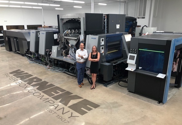 Friday 13. July 2018 - Warneke Paper Box of Denver, Colorado recently began installation of the new Heidelberg Primefire 106. The 7-color industrial inkjet 40 B1 size digital press will allow the packaging printer to expand their business by collaborating with their customers on targeted short run packaging campaigns and provide added security to cartons through variable content.