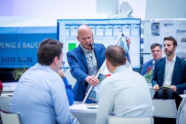 The print demonstrations were about more than just live print production on the Rapida 145, however. On external monitors, the visitors were able to follow how press data were gathered in the production planning system LogoTronic Professional and transferred to the management information system (MIS). The LogoTronic cockpit displayed all important production parameters, and it could be seen, for example, that the net production output was still 13,000 sheets/hour despite the many job changes. All makeready times were documented and the OEE (overall equipment effectiveness) was calculated and displayed. The Koenig & Bauer specialists explained the JDF/JMF workflow and use of the MIS Optimus Dash in daily commercial and online print production.