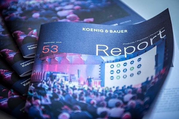 Friday 05. October 2018 - Koenig & Bauer Report No. 53 is out now. The latest issue of the Groups customer magazine contains a wealth of news from the printing industry. The 56-page magazine is packed with articles on market developments and information on new processes and products in sheetfed and web offset, postpress, flexo printing and special applications. Koenig & Bauer also reports on its award series, the implementation of the new brand and the anniversary of the companys own vocational school.