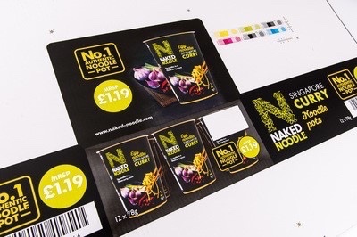 Corrugated post-print (C flute and above): Naked Noodle Singapore Curry Noddle Pots 12 x 78g using Eskos new XPS Crystal for UV Exposure and Esko workflow. It was submitted by Smurfit Kappa Inspirepac.