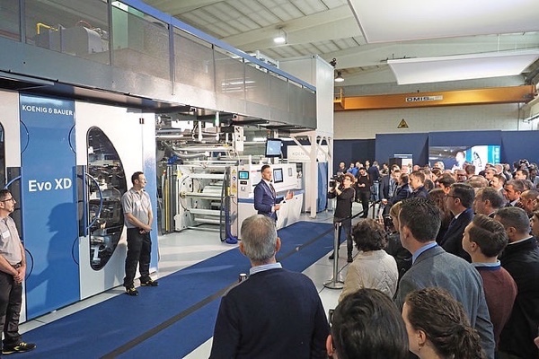 Friday 23. November 2018 - Koenig & Bauer Flexotecnica held an open house for customers at its plant in Tavazzano near Milan for the first time since the takeover by Koenig & Bauer in December 2013. On two days around 300 visitors were treated to live demonstrations of the Evo XD CI flexo press and received a raft of information about printing with water-based inks.
