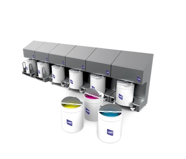 The F10 iCon ink supply system regulates ink flow, pressure and viscosity, providing constant, accurate ink density on the printed substrate without air contamination. It achieves thorough automatic cleaning, with a complete ink-change cycle, in 5 to 15 minutes, returning a very large proportion of unused ink to the bucket.