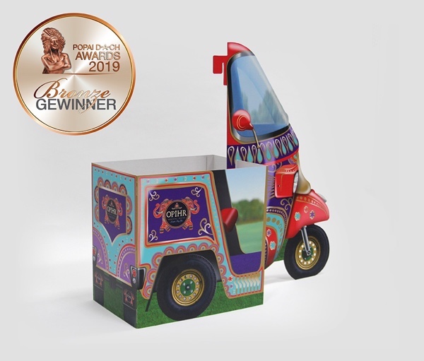 Wednesday 29. May 2019 - Thimm scores highly against the competition: the jury for the international POPAI Awards, which cover Germany, Austria and Switzerland, nominated the creative rickshaw display for Hardenberg-Wilthen AG for a bronze statuette in the Drinks category. The award-winning palette display showcases the Opihr Oriental Spiced Gin brand to particularly striking effect at the POS. The award ceremony took place on 8 May at a large gala in Frankfurt.