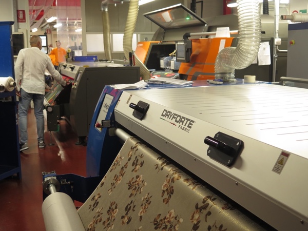 From the outside, it looks more like a sophisticated design atelier than an industrial warehouse, yet Giò&Giò is a very thriving textile business, which has been designing, manufacturing and marketing printed fabrics since the 1970s, ranging from natural to synthetic fibres. As in the best practices of Como, the production area is the logical extension of a large style office, where skilled designers work every day to transform the ideas and briefs of the fashion brands into textile patterns, produced in micro sizes or thousands of meters. The company jealously guards four decades of printed fabric samples, which at a glance make you dream of high fashion, the top brands of yesterday and today. This is Como, a place where the border between design and production is blurred. To realise this, all we need to do is take a trip to the press room of Giò&Giò, where Matteo Tosato, the company’s young Production Manager, welcomes us and with a relaxed look he stands up to three lines of aleph LAFORTE inkjet printers in full production. To be precise, two LAFORTE Paper for sublimation paper and one LAFORTE Fabric for direct printing onto fabrics with reactive dyes. “Until a couple of years ago, there were 13 aleph printers based on Mimaki JV5 and TX500 technology in this department, ten for paper and three for textile printing, each not exceeding 20 metres per hour. For the last two years, we have replaced them with three LAFORTE, each of which produces 180 metres/hour of excellent quality. So we can spend more time on prepress and value-added activities. – Explains Tosato. The levels of productivity, automation and repeatability introduced by LAFORTE allow the Gio&Giò team to manage large quantities. Or merge several micro-jobs into a single processing queue, limiting setup times, machine downtime, maintenance and reel changes to a minimum. In addition to the lower service costs, made possible by the robustness of LAFORTE Paper, another advantage is the patented vacuum belt, which introduces micrometric precision in the feeding of lighter papers. “On the old Mimaki we could feed 250 metre reels of 70/80 gsm paper, while today we use jumbo reels and we go down to 45 or even 18 gsm weights, increasing the capacity to 1,150 or 2,000 linear metres – explains Tosato – So we reduced the purchase costs, and from one reel change every hour we load just one big reel per day. Then, by using ultra-lightweight paper, we obtain enormous savings in colourants”. Giò&Giò provides high fashion brands with direct printing on silk, cotton and viscose with reactive dyes. But also fast-fashion operators, for whom they produce high volumes of printed polyester. The orders, often thousands of metres long, are processed in the morning, and the evening they are ready for shipment. Moving from thirteen artisan printers to three industrial units have therefore translated into efficiency, operator motivation and the ability to manage production peaks calmly, but also into higher perceived quality. “That with aleph is a close and exclusive relationship, which we constantly cultivate – concludes Tosato – Having a single supplier for hardware, software and inks give security. And a direct relationship, mostly by telephone, with aleph’s support team, allows us to deal with any possible doubts or criticalities”.