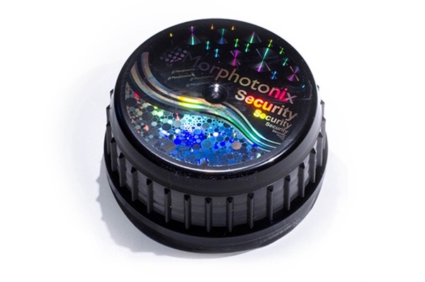 To create this unique and secure bio-inspired and sustainable closure design. MORPHOTONIX nano-engraved steel cavities with 130,000 dpi precision custom diffractive holograms, which were replicated by UNITED CAPS into the closures via injection molding. The cavities are seamlessly integrated in the molding line, and the closures are produced at standard speeds, with zero additional consumables. The irremovable security designs provide immediate verification without scanning.