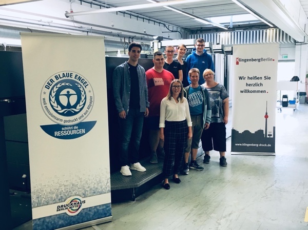 The fact that Druckhaus Berlin-Mitte, also known as Umweltdruckerei.Berlin, is not only a pioneer in the field of environmental protection, but also thinks of the next generation when it comes to sustainability, is shown by the constant involvement of trainees. Be it exciting campaigns such as the award-winning annual calendar 2019, the hiring of three trainees this year, or the filling of important positions such as environmental management with young managers.