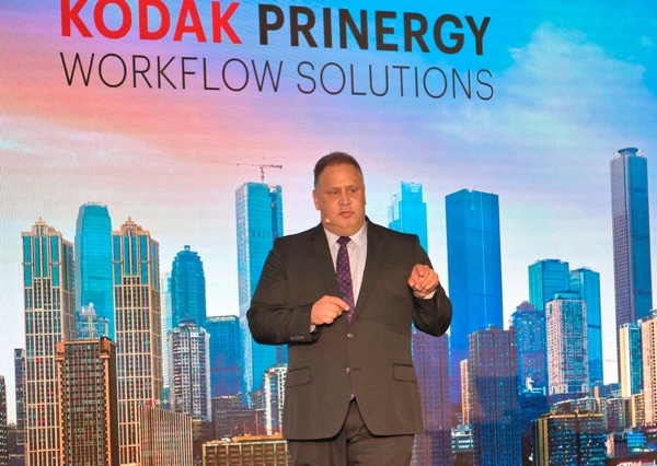 At a celebratory dinner reception to commemorate 20 years of KODAK PRINERGY Workflow software, Jim Continenza, Executive Chairman, Eastman Kodak Company, emphasized that organizational changes in the near future would enable Kodak to focus even more sharply on print and print customers, saying to them, “You will see a film group where we will focus on our motion picture and film business and you will see a print group. We are committed to helping you grow your business with PRINERGY, PROSPER, SONORA, plates, and other services. We will continue to invest in our business to make yours better.”