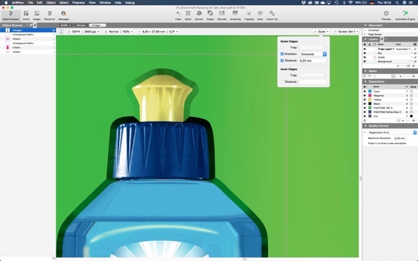 Esko update – Object-based trapping ArtPro+The new ArtPro+ update, which is undoubtedly a game-changer, as Jan explains: “So far in packaging there has not been a single solution that can automate and accurately trap a packaging or label job due to the requirements of different printing processes, substrates and the use of spot inks and embellishments. But this new patented concept as part of ArtPro+ now tags upfront how a file should be trapped, making this a real breakthrough in artwork and design.”