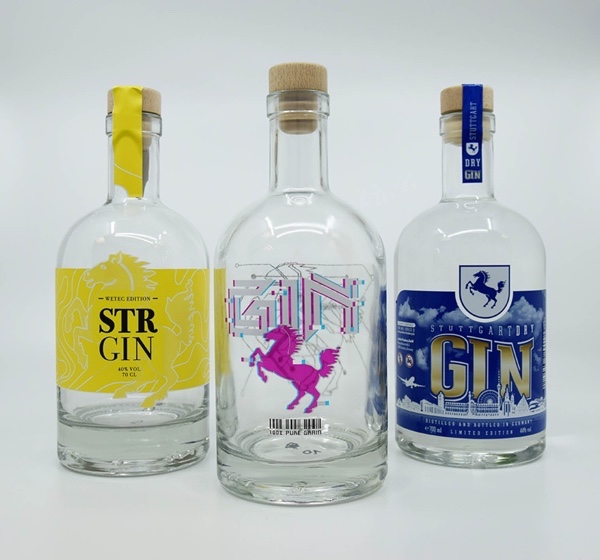 First place winner Oliver Teutsch showed the way to stand out from the crowd: Not only the reduced, unconventional label design, but also the fine plotting work with the presentation of the Stuttgart timetable was highly appreciated. Demi Wäckerle also played with features of the city (topography, name “STR Gin”) and the relief effect created by clear varnish made her work something special. A well thought-out data creation with UV printing on both sides, which is only possible with digital printing, brought Michael Hochkirch third place. “We would like to thank all participants for their time and effort. The quality of the labels exceeded our expectations, we ourselves received inspiration and the decision was not easy,” commented Hisashi Takeuchi at the award ceremony.