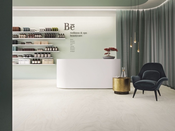 The Swiss Krono Group presented a variety of new decors aimed at improving the quality of life and creating a room atmosphere that makes you feel good. The “Adaja Oak” floors from the Robusto series are particularly oriented towards the natural version. Windmöller showed its “Purline Organic Floor wineo 1500” in numerous color variations and patterns. This flooring is based on the composite material ecuran, which is predominantly made from renewable raw materials like rapeseed or castor oil and chalk. It is available as an individual print on request. “Purline Organic Flooring” is sustainable, resistant and aesthetic, as well as contributing to a feeling of well-being based on its ingredients.
